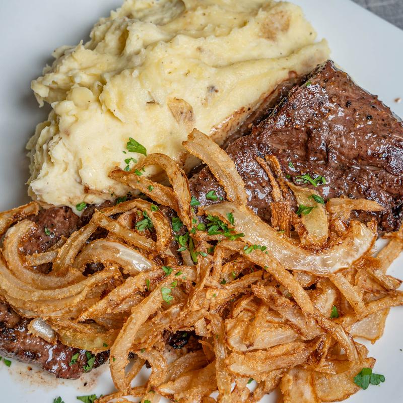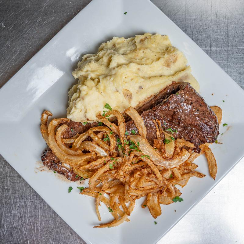 $54.95 cash | $56.60 card • Includes fresh garlic knots, house salad, glass of house red or white wine choice of side: NY-style cheesecake • *Consuming raw or undercooked meats may increase your risk of food bourne illness, especially if you have certain medical conditions. Cooked to your liking. Before placing your order, please inform your server if a person in your party has a food allergy.